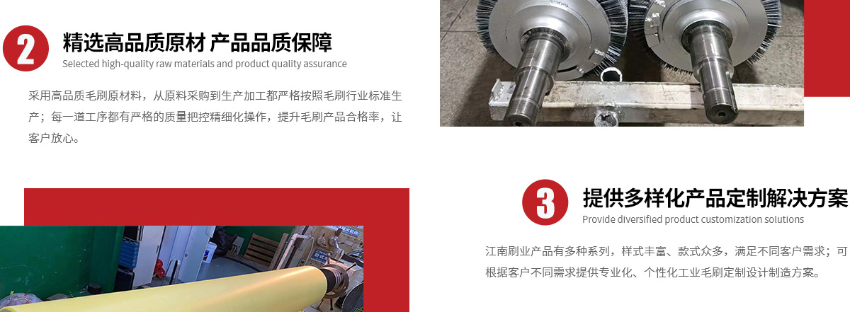 潛山江南刷業有限公司生產汽車噴涂鴕鳥毛毛刷,鋁板脫脂線輥刷,鋁板去氧化皮輥刷,淬火爐爐內輥,無紡布擠油輥擠干輥,無紡布真空吸油輥,電加熱打孔針輥等,以及各類涂油滾&膠輥&海綿滾&不織布輥、密封刷&鋼刷式密封、輸送帶刷式清掃器&牛體刷、鋼絲刷條&鋼絲板刷、PVC毛刷板&尼龍毛刷條、打孔鋁針輥&打孔銅針輥、圓形滾刷毛刷輥系列、圓形鋼刷&鋼絲刷輥、拋光毛刺磨料刷、試管刷&管道刷等各類刷制品。江南刷業注重...